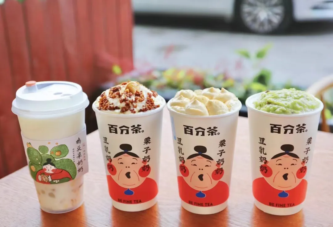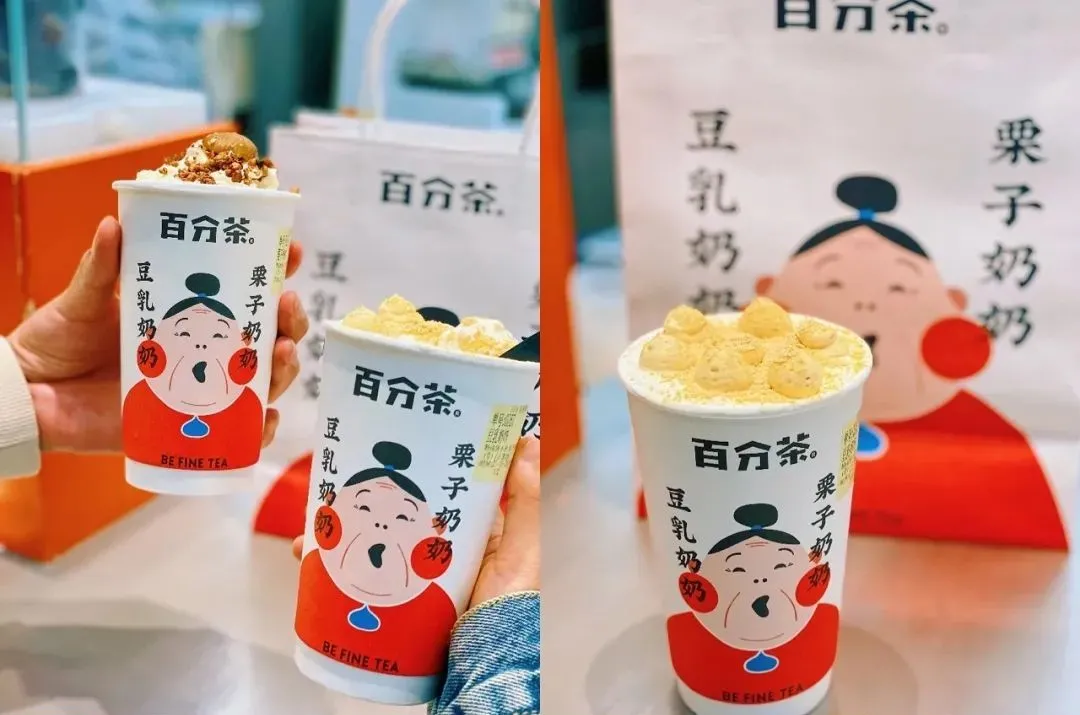去年10月,百分茶推出栗子奶奶、豆乳奶奶兩款秋冬熱飲,“奶奶系列”產品首次亮相;