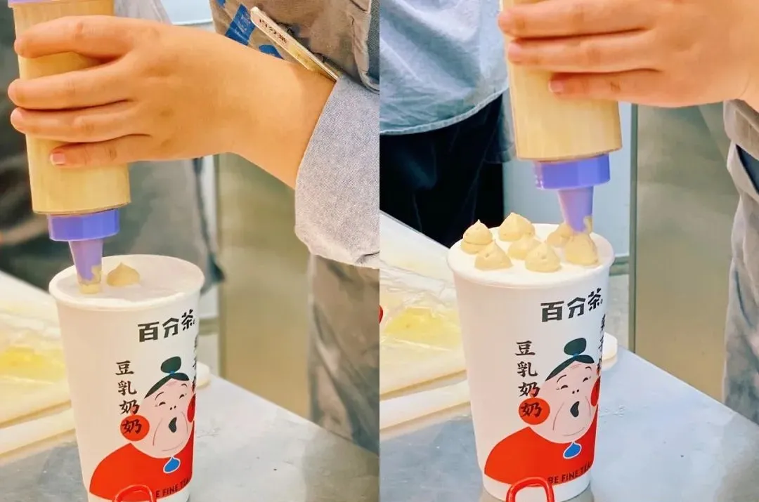 今年9月,百分茶又將蘇州時鮮雞頭米融入到鮮奶中,推出雞頭米奶奶。同時栗子奶奶、豆乳奶奶兩款秋冬熱飲迴歸。