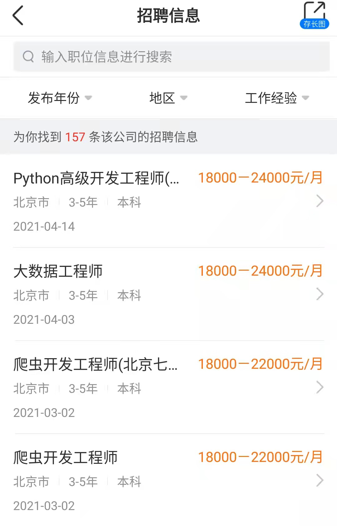 值得注意的是,在“招聘信息”一欄中,還緩存有此前該公司的招聘信息。招聘的崗位有大數據工程師、爬蟲開發工程師,薪資也不低,基本是月薪2萬起步。