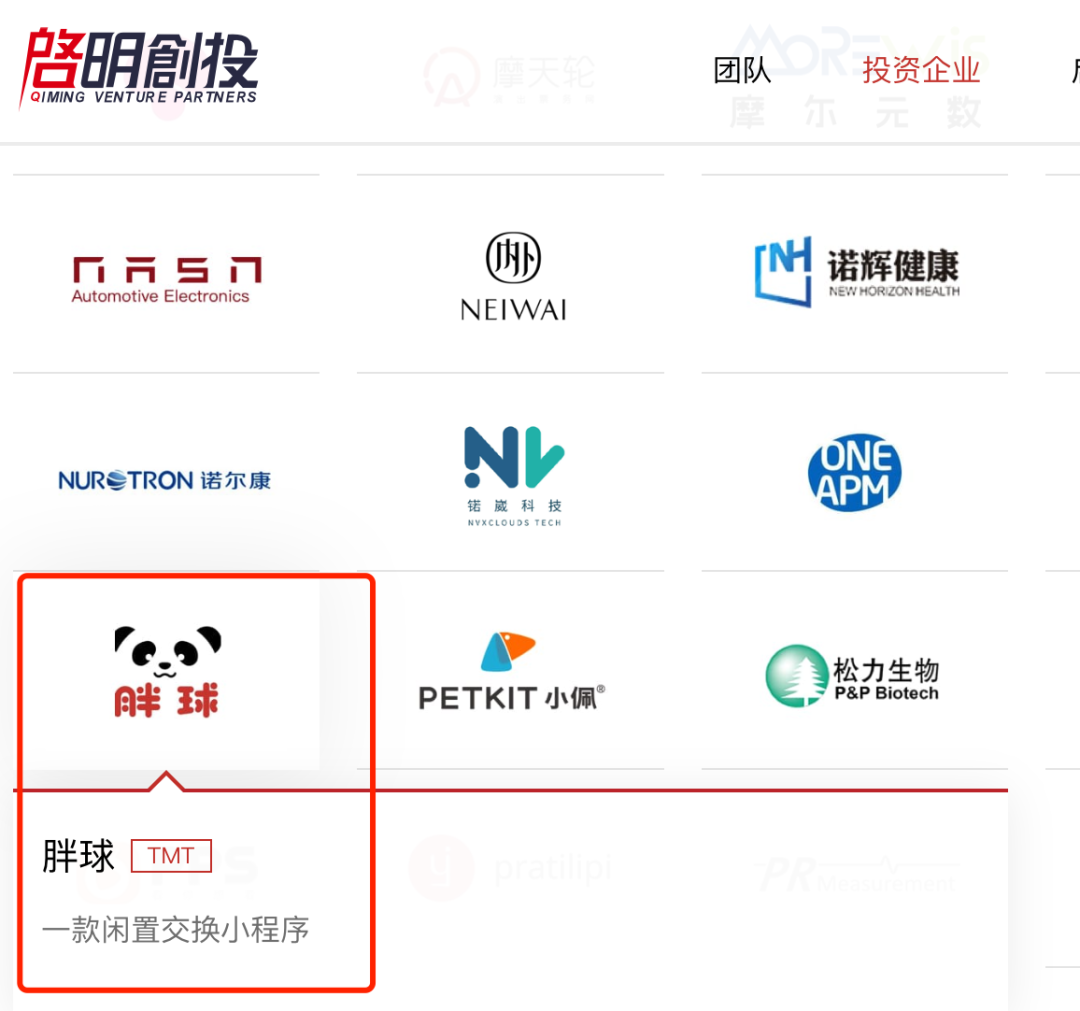 2018年8月份,胖球再獲得近千萬的A輪融資。至今啓明創投的官網上,投資企業名單中還有胖球的身影,介紹也是此前的閒置交換小程序。