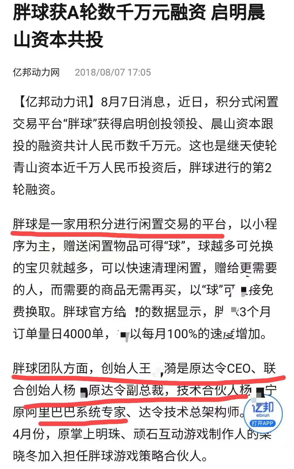 在公開報道中,對於創始團隊曾有這樣描述:胖球團隊方面,創始人王某漪是原達令CEO、聯合創始人楊某原達令副總裁,技術合夥人楊某寧原阿里巴巴系統專家、達令技術總架構師。