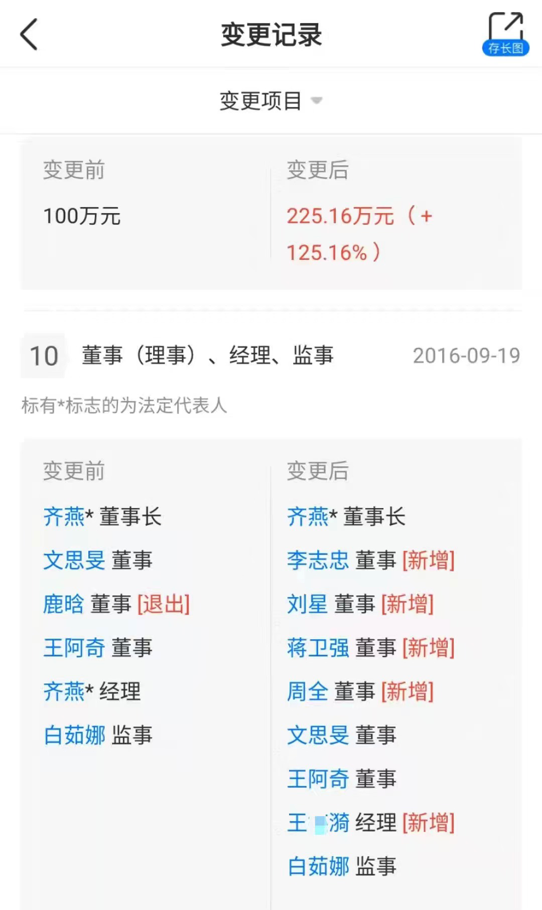 從下面這張工商變更記錄中,我們能看到鹿晗正式退出了董事行列,不過這也是王某漪第一次出現在工商信息中。