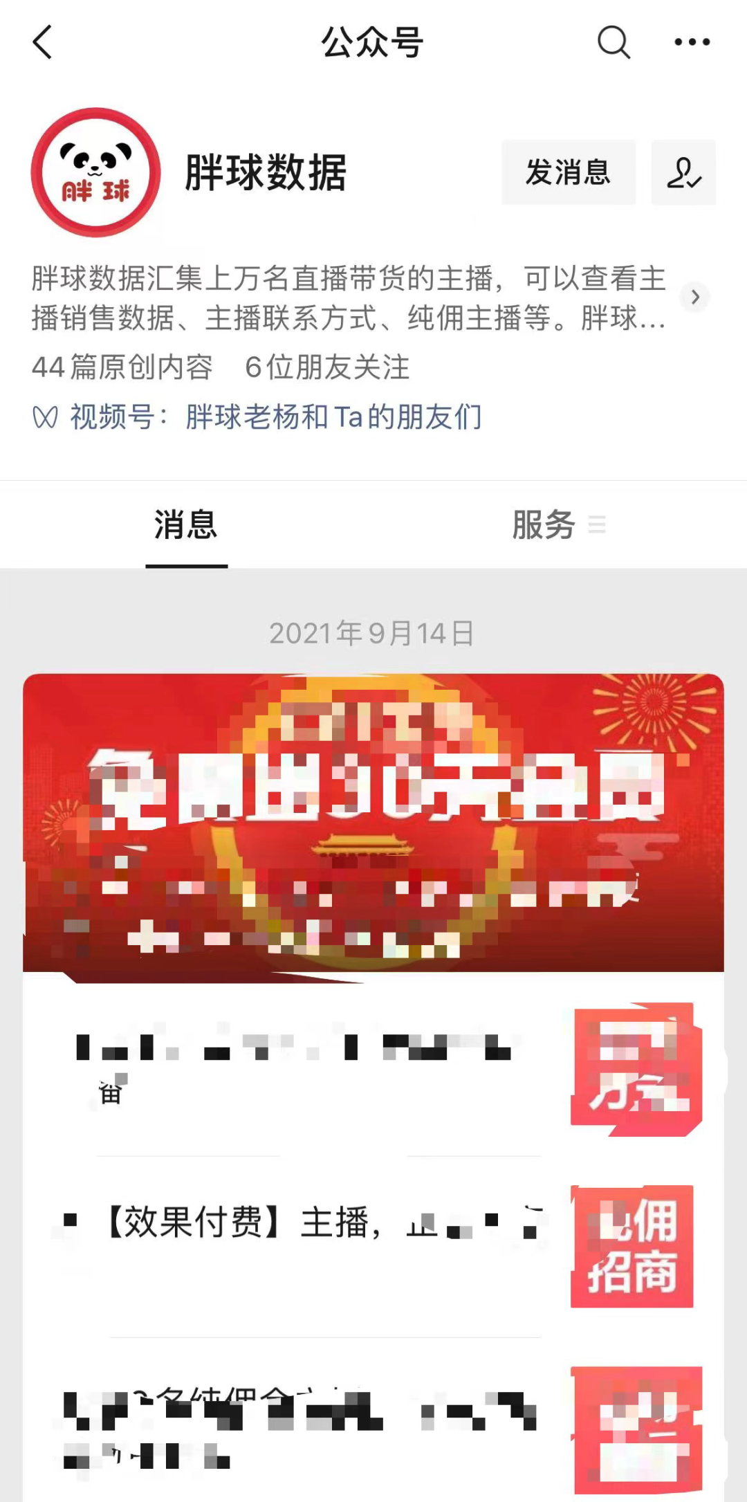 現在公眾號菜單欄全是關於社交電商的內容,完全看不出這曾經是一家直播數據平台。