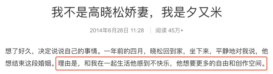 但看似需求完美匹配的連接,結局是僅七年後,高曉松就以要創作自由為理由,提出了離婚。