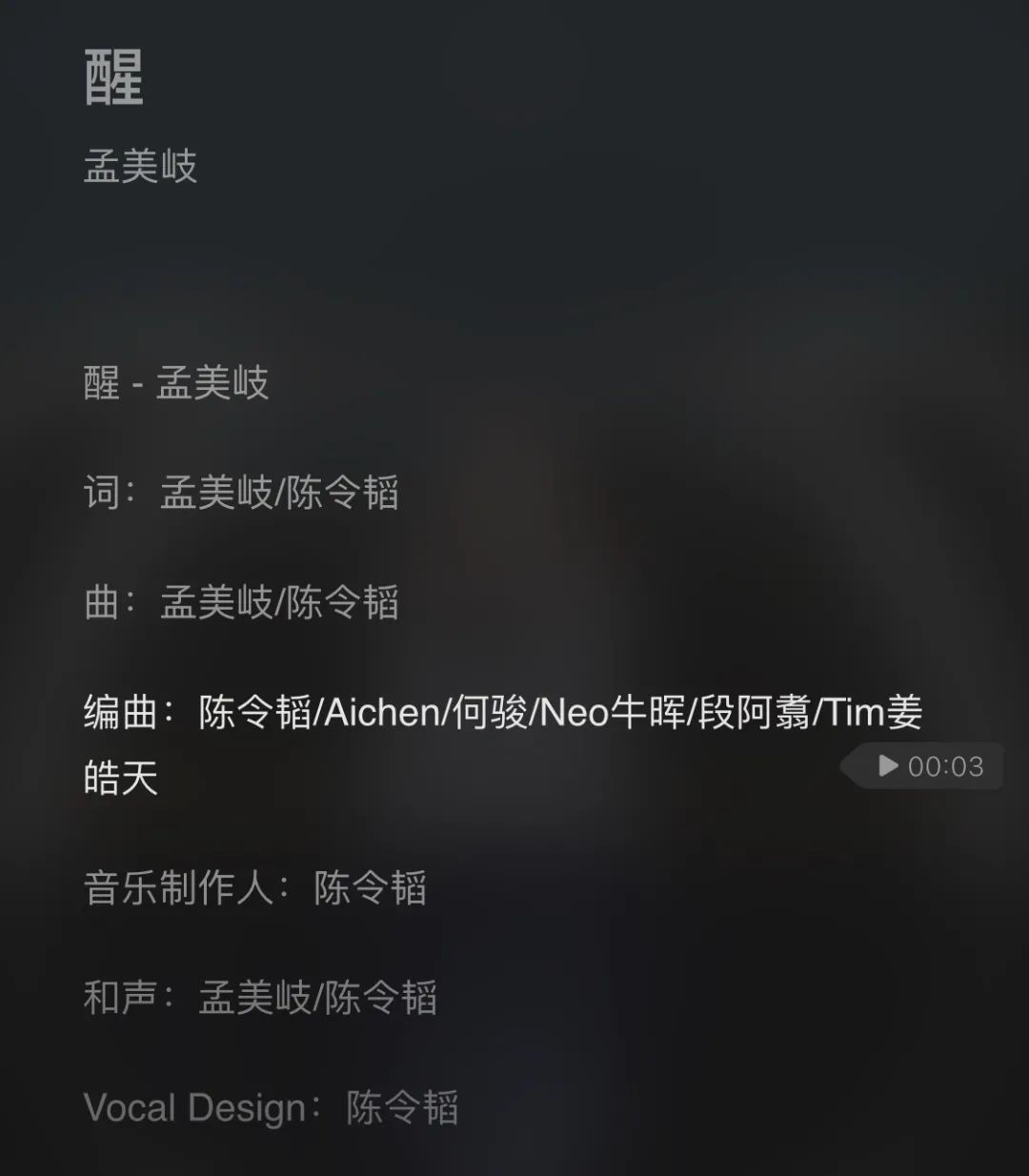 10月15號,孟美岐發行的新專輯裏,陳令韜參與了四首歌的製作,還説已經把自己所有的積蓄都投進去了。