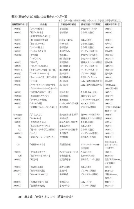 [4]押山美和子《少女マンガジェンダー表象論:<男裝の少女>の造型とアイデンティティ》、2018年,アルファベータブックス