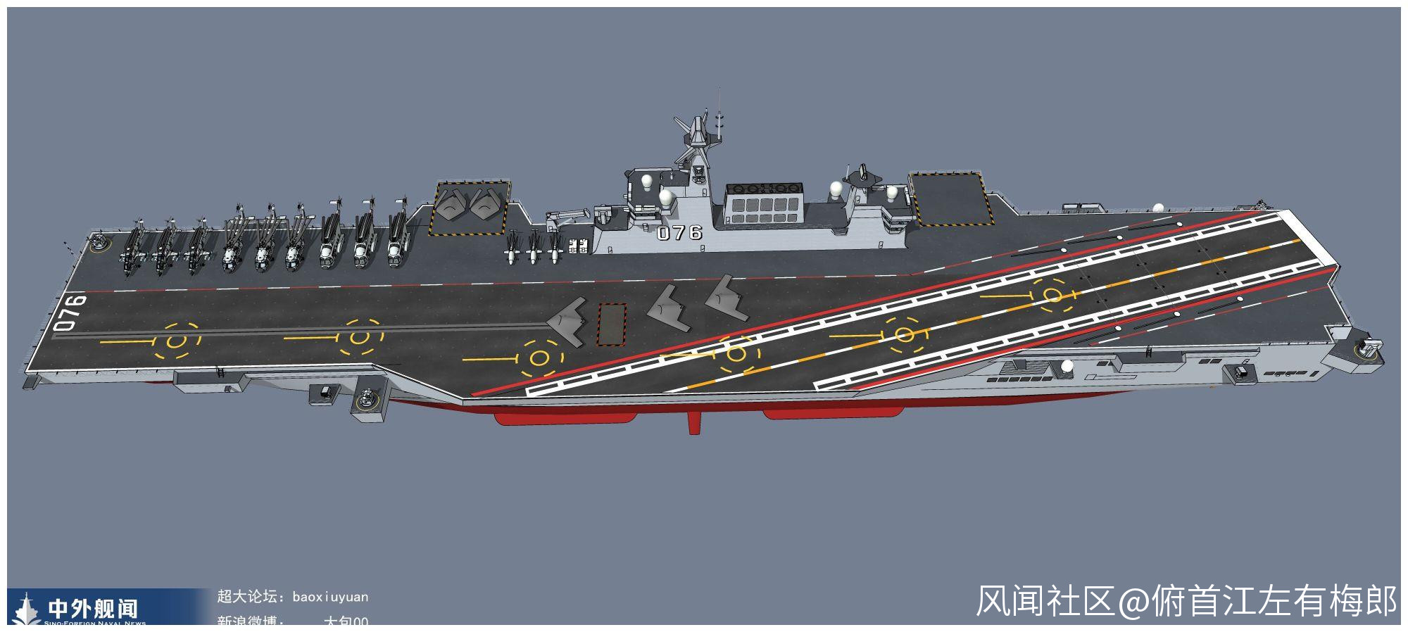 造的071,075和大奶媽。而在新一代艦艇方面,核電彈航母,076無人機母艦,054B新一代護衞艦,可水上水下切換的全能艦……基本上也勾畫出了未來海軍的四梁八柱。在這個體系裏,核電彈航母無非也就是追平或者超出了福特級,而076和全能艦卻是顛覆式的創新,076可以作為航母的最佳伴侶,利用電