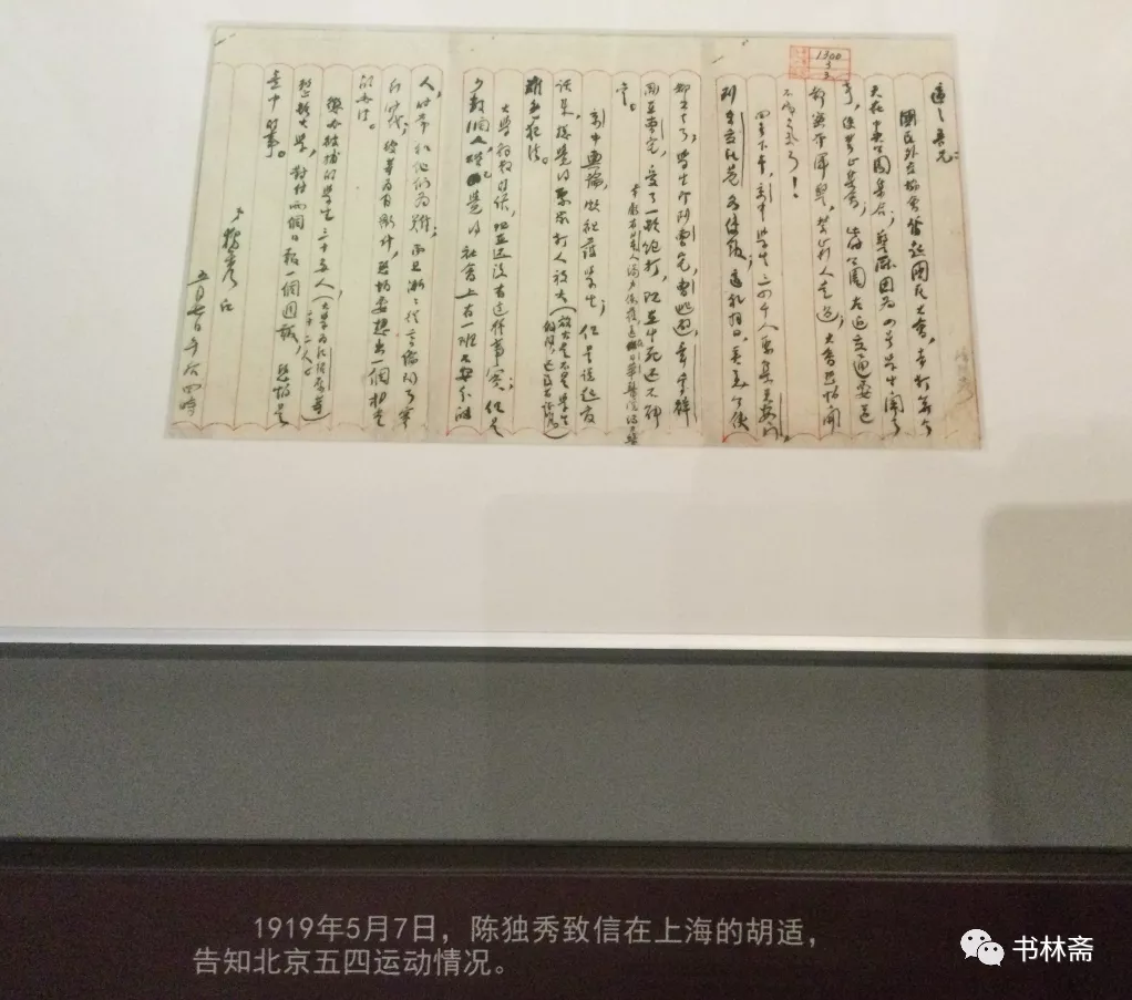 陳獨秀給胡適談論五四運動情況的書信。