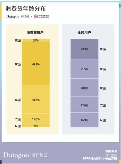 報告顯示,消費貸年齡分佈上,90後幾乎佔據半壁江山,佔比為49.3%;其次是80後,佔比為31.5%。一組數字顯示,全國有1.75億名90後,其中只有13.4%的年輕人沒有負債,而86.6%的90後都接觸過信貸產品。
