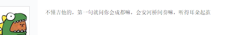 雖然同樣長期處於半野生狀態,但國內的搖滾圈一直是看不上民謠圈的,以搖滾圈視角看來,民謠圈普遍“沒技術,沒深度,沒營養”,雖然也有高水平的創作者,但這些年火遍全國的那些民謠歌曲在他們眼裏大多隻是一些用充滿矯情和荷爾蒙的歌詞和4536,1645之類的和絃套路取悦聽眾的口水垃圾。(其實搖滾圈的平均技術含量也是沒法吐槽的,但相對來説是比民謠圈好)