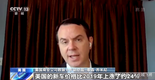 美國商業公司數據分析副總裁 泰森·喬米尼:美國的新車價格比2019年上漲了約24%,我們看到新車的價格大規模上漲,二手車也是如此,二手車的價格也有同樣的漲幅。因為我們的供貨不足,完全滿足不了需求,供應短缺意味着消費者最終不得不多付錢。