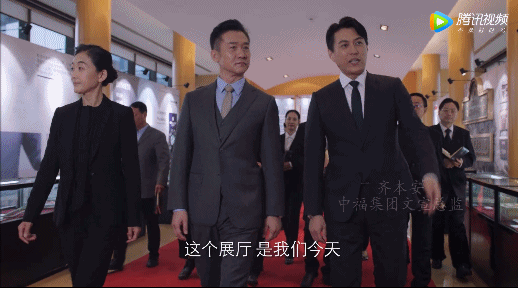 前面三個,中間的是集團董事長、總經理、黨委書記林滿江(黃志忠 飾)。