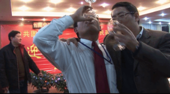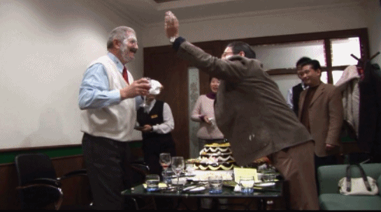 他喝得醉醺醺,勾着老外的脖子,臉貼着臉,給人老外糊了一臉的蛋糕,自己也糊了一臉蛋糕。