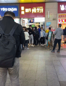 不得不説,這個排隊好像是有點設計在裏面的,不僅假排隊,師傅手上動作也要控制慢速勻速,排隊才能排起來。