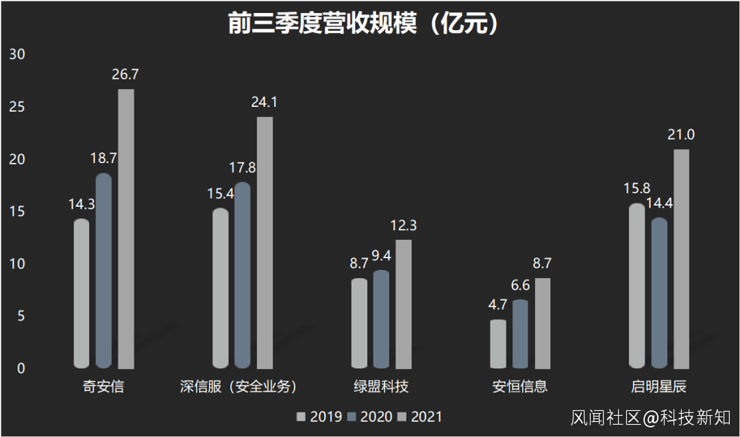 值得説明的是,由於新安全行業整體處於技術投入期,主要企業均處於研發增長高,人員擴充快的階段當中,並未實現整體盈利。因此,衡量新安全企業的黃金標準仍然是營收規模及營收增速,而非淨利潤指標。