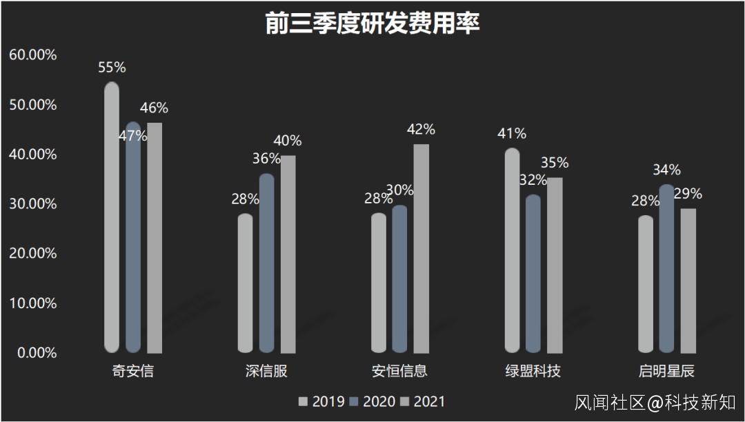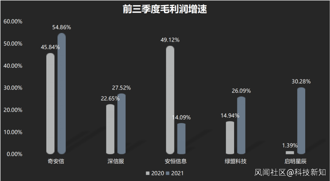 整體來看,除奇安信一家外,深信服、綠盟科技、安恆信息、啓明星辰在今年均陷入經營成本不同程度增長的困境,並對毛利率水平形成拖累。