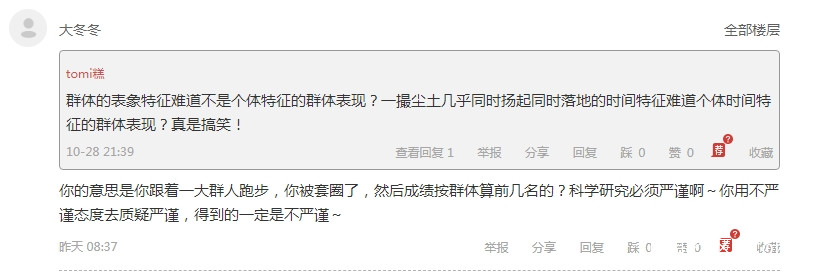 物理學不僅僅研究個體,也研究羣體特性,比較典型的如帶電粒子在電磁場中的運動,單個電子在電磁場中的運動可以看作是對個體的研究,電子束流呢?帶電粒子流經的導線呢?。。。難道因為我們無法分辨出具體的個體,就可以指責説“這不科學啊;這不嚴謹啊”?至於熱力學,甚至連具體的個體都不研究,按你所説是不是“更不科學,更不嚴謹”?所以,上面所列的評語,也體現了你的物理學知識極其匱乏。