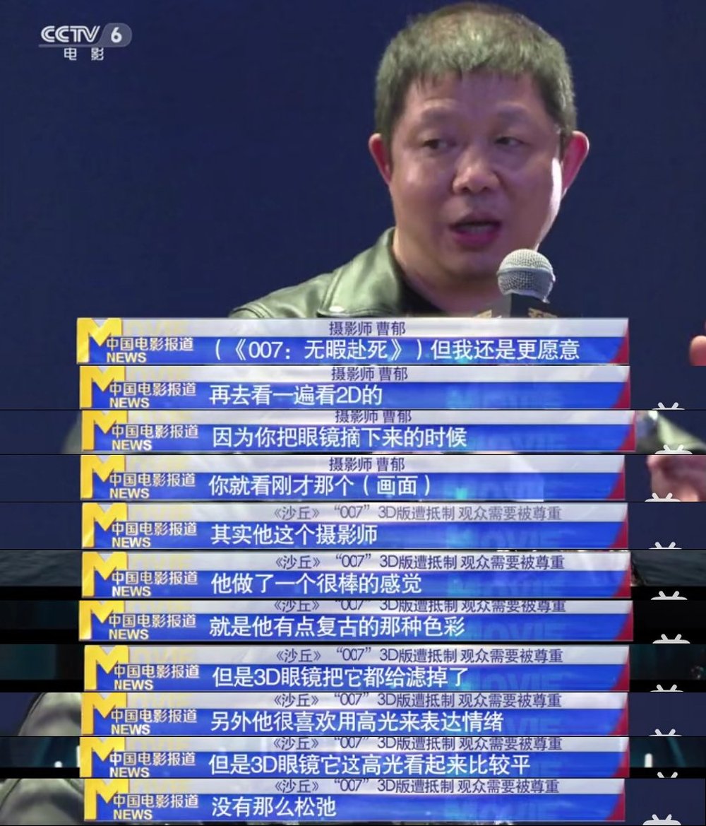 攝影師曹鬱説:“但我還是更願意再去看一遍2D的,因為你把眼鏡摘下來的時候,你就看剛才那個畫面,其實他這個攝影師,他做了一個很棒的感覺,就是他有點復古的那種色彩,但是3D眼鏡把它給濾掉了,另外他很喜歡用這種高光來表達情緒,但是3D眼鏡它在高光看起來比較平,沒有那麼鬆弛。”