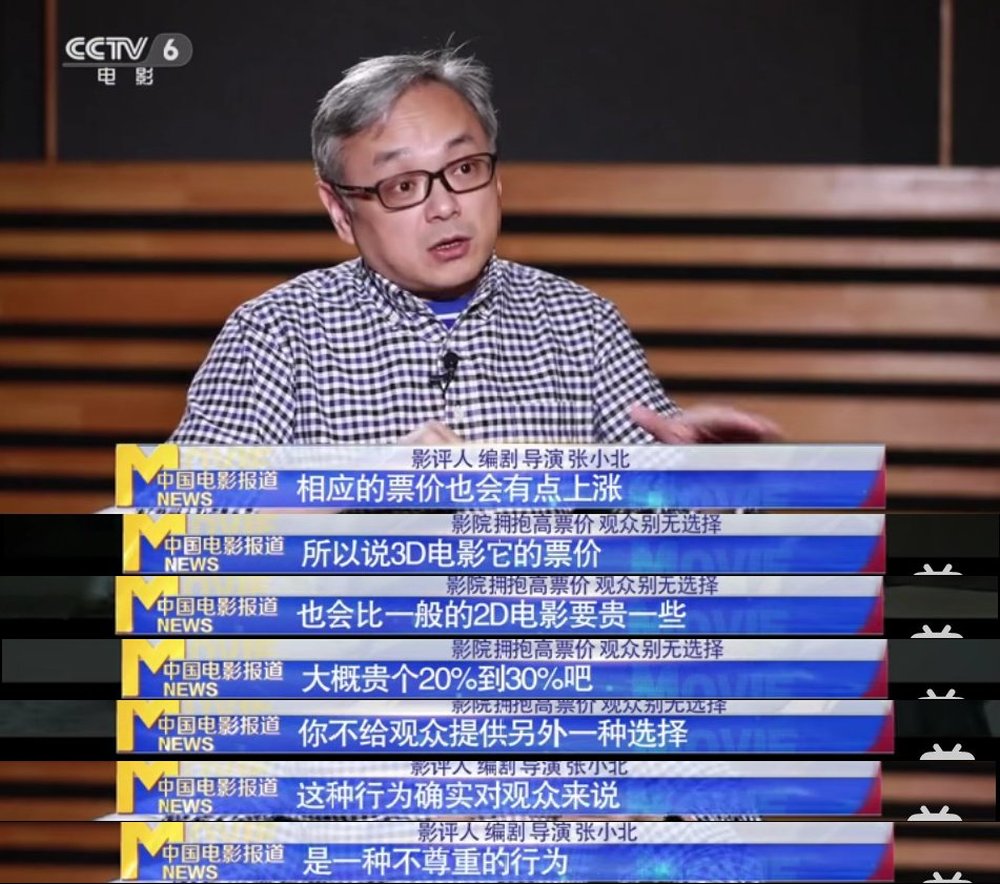 張小北認為,影院這樣做對觀眾來説是種不尊重:“電影由2D轉制3D後,相應的的票價也會有點上漲,所以説3D電影它的票價也會比一般的2D要貴一些,大概貴個20~30%。你不給觀眾提供另外一種選擇,這種行為其實對觀眾來説是一種不尊重的行為。”