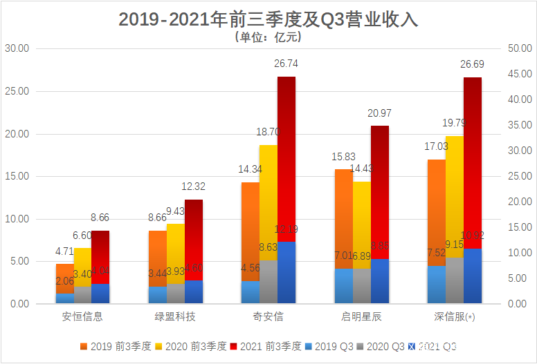 近期,安恆信息、綠盟科技、奇安信、啓明星辰和深信服數家以網絡安全為主營業務收入的公司,相繼發佈了2021年三季度的財報。