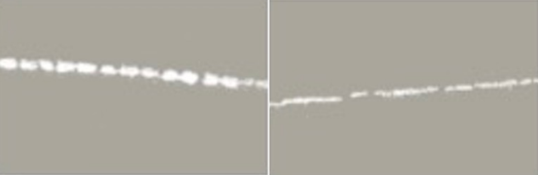 短而粗的軌跡(大約5cm長),表明粒子不是來自宇宙射線。它大概率是一個大氣中的氡原子衰變放出一個氦核而留下的。氡是一種天然存在的放射性元素,但它在空氣中的濃度很低,其放射性低於花生醬。從氡原子中放出的氦核,體積大且能量低,因此它們會留下短而粗的軌跡。