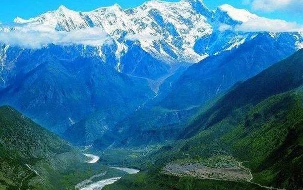 馬泉河過薩嘎始稱雅魯藏布江,之後橫貫整個西藏南部地區,繞過喜馬拉雅山脈東端的南迦巴瓦峯後轉向南流,過雅魯藏布江大峽谷之後經巴昔卡出國境。雅魯藏布江被藏族視為“搖籃”和“母親河”,它是世界上海拔最高的大河,平均海拔在4000米以上,是中國坡降最陡的大河,藴含着巨大的水電能量。在藏語中,“藏布”意為河流,“雅魯藏布”意為“高山流下的雪水”,雅魯藏布大峽谷(下圖)為世界第一大峽谷,最深達6009米(下圖)。
