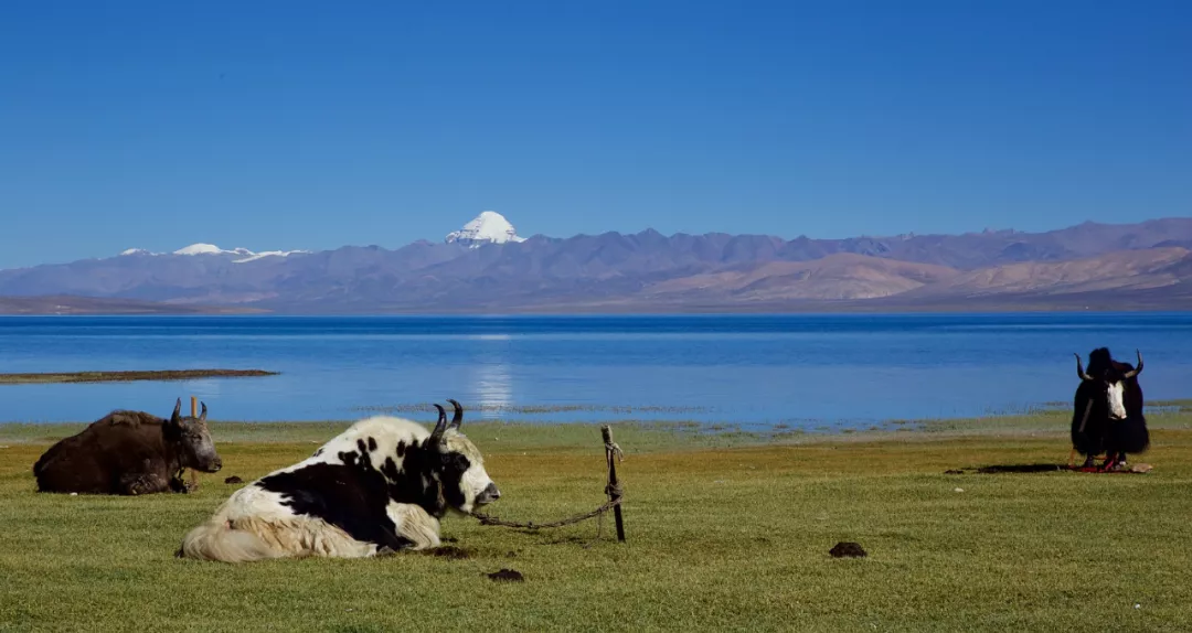 佛教眾的聖湖——瑪旁雍湖,遠處即為岡仁波齊峯