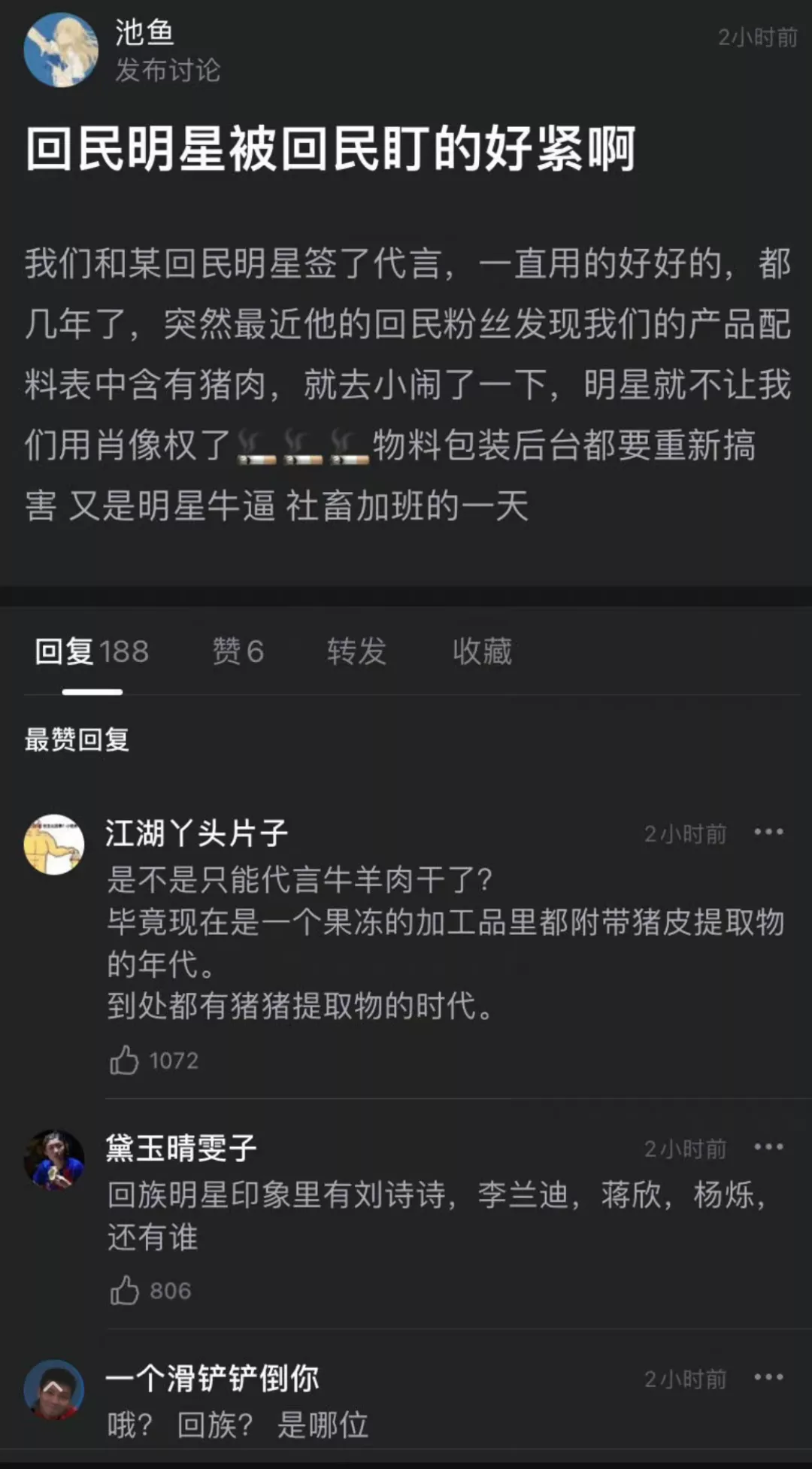 **這類攻擊其實不新鮮,基本上都是拿“民族團結”“宗教信仰”“教族一體”來當擋箭牌的。其中最可笑的一批是直接否認問題的存在,反過來給那些看到這些問題併發聲的網民、我們這些指出問題並盡力提出合理解決方案的人,扣上“捏造謠言”“妖魔化XX羣體”“破壞民族團結”“XXX的狗腿子”等等諸如此類的大帽子。**下面這位就是個典型。