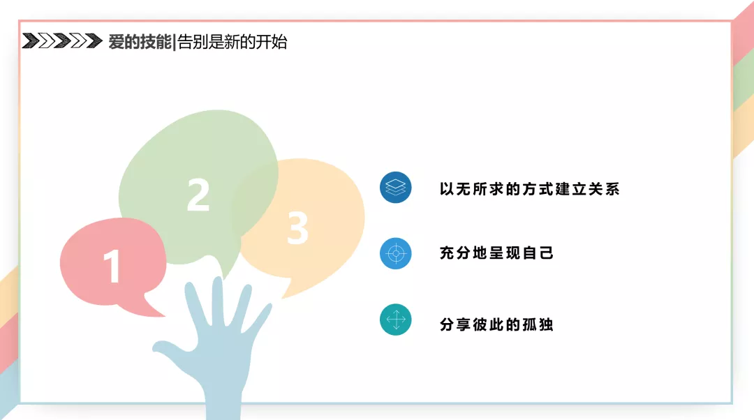 “談戀愛不僅是談戀愛而已,是讓自己成為更好的人。作為生命本身,希望自己成為什麼樣的人,要達到什麼條件,和那個人一起去探索和發現。”這個過程是不確定的,循序漸進的,需要邊界的。在這裏,讓我們一起學習周老師的戀愛tips吧~甜甜的愛情不總是進行時,也會是過去時,變成鹹鹹的眼淚。即使説了再見,也請不要沉溺於悲傷之中,因為“一直苦苦追尋的那個人,很可能就是上帝隨便給你發的一個禮物”。這可能是愛情的“失去”,卻不是“失敗”。不要因錯過太陽而錯過羣星,也請不要因愛情的失去而否定自己~