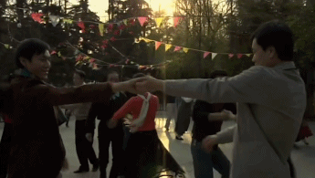 女人楞了,但三個八拍後,她又牽起男人的手繼續嗨皮。