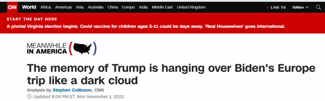 兩任總統的對比成了過去幾天美媒報道的最大花邊。很多人甚至根本不清楚拜登在G20峯會和聯合國氣候大會上説了什麼,卻注意到他跟特朗普明裏暗裏的過節。