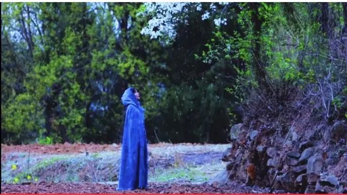 視頻中,一個古妝美女,正在釀製桃花酒。