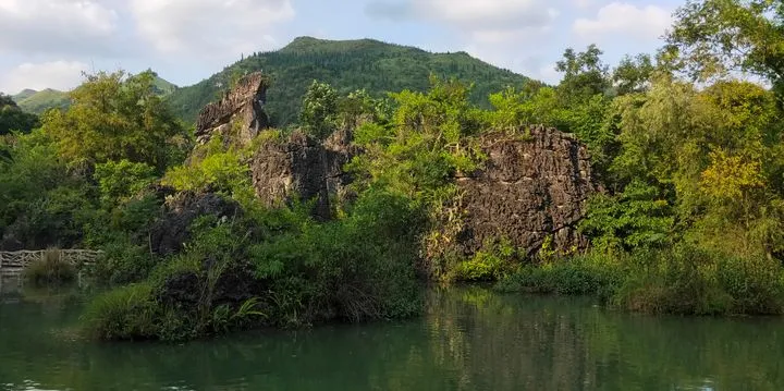 上半段的遊玩路線,主要是沿着一條彎彎曲曲的石板小道,穿行於喀斯特地貌特有的小石山之中。在這裏,你會發現平常水、石、樹三者很難關聯在一起,在這裏卻是無拘無束地相擁相抱,水中生石,石中長樹。