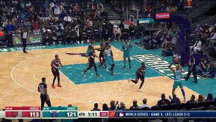 所以,開拓者漏給黃蜂大把三分的另一面是,黃蜂的確在三分線上佈置了大量既能出手定點,又有個人主攻能力的球員。核心輪換球員幾乎個個都能持球往裏突兩下,時刻保持4射手,甚至時不時擺出的5-out陣容,既給了殺入籃下的球員空間支持,又讓他們給隊友做球的難度大大降低——為什麼烏佈雷都能單場5助攻?