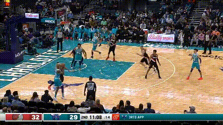 防守這樣的球隊,最不適合的策略恐怕就是夾擊——當然,如果你相信烏佈雷還是勇士版本,也可以賭一下——並且,由於開拓者單防弱點多,也會在不同方向被黃蜂的某個球員打穿。比起漏三分,被順下球員扣籃的場面顯然是比盧普斯更不能接受的回合,但籃下協防的球員利拉德,既沒有意識,也沒有體型去攔下PJ華盛頓。