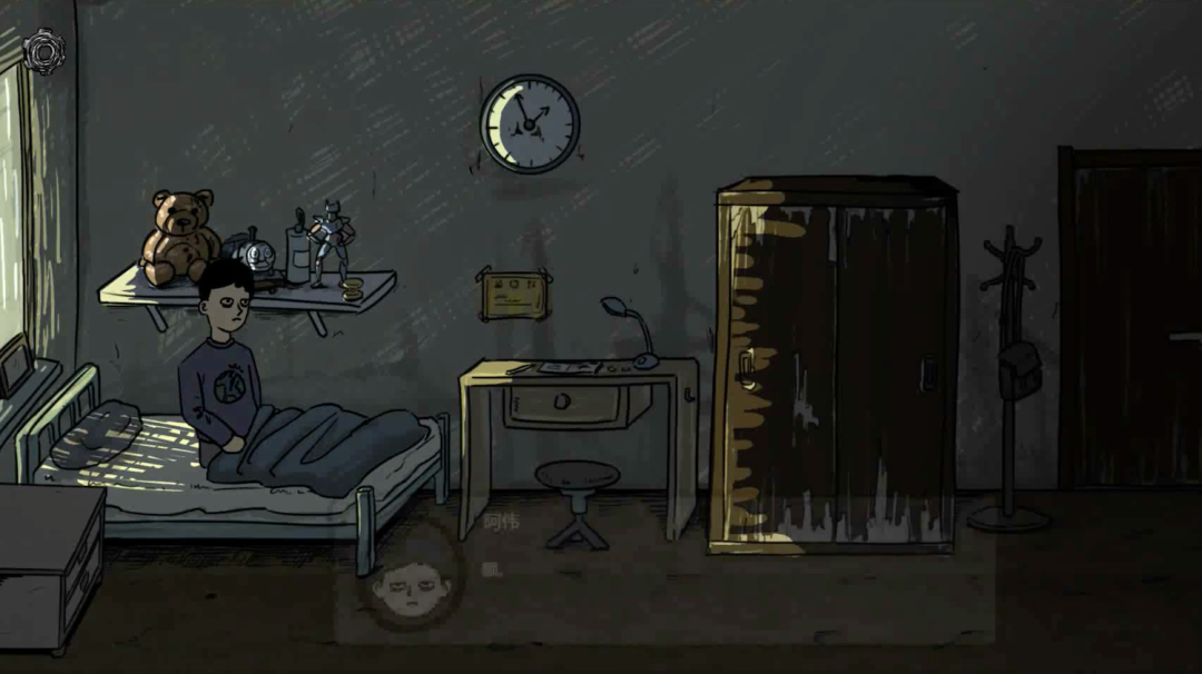 在這些作品中,給我留下最深印象的是《筒樓異事》。它是一個非常風格化的2D解謎遊戲,整個故事的場景發生在一棟破舊的筒子樓裏,一個叫作阿偉的少年從自己房間的牀上醒來,發現房間裏站着一個黑色的怪人。黑色的怪人嘰裏咕嚕説着難懂的話,阿偉依稀聽到一些線索,拿起房間裏的手電筒走出門去,在門外又遇到了黑色的怪人,然後——阿偉又一次從牀上醒來,為了解開夢中的謎題而在自己居住的筒子樓裏探索……