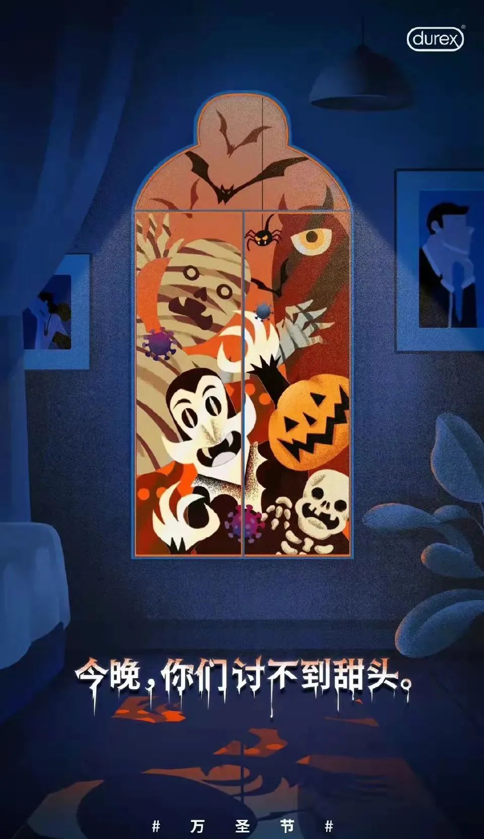 △杜蕾斯2020年和2021年的萬聖節海報