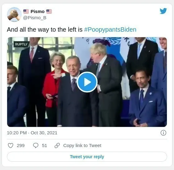 前內華達州共和黨主席Amy Tarkanian説:“羅馬方面的説法是,會面時間異常長,因拜登在梵蒂岡出了點’廁所事故’,必須在他離開前解決。“若是真的,確實是在虐待痴呆病人。還有人扒出拜登一次見教皇換了兩套衣服。同一會議,拜登穿了2套不同的西裝和領帶。
