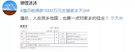 如今潘石屹又捐款了,這次是他的家鄉甘肅天水。