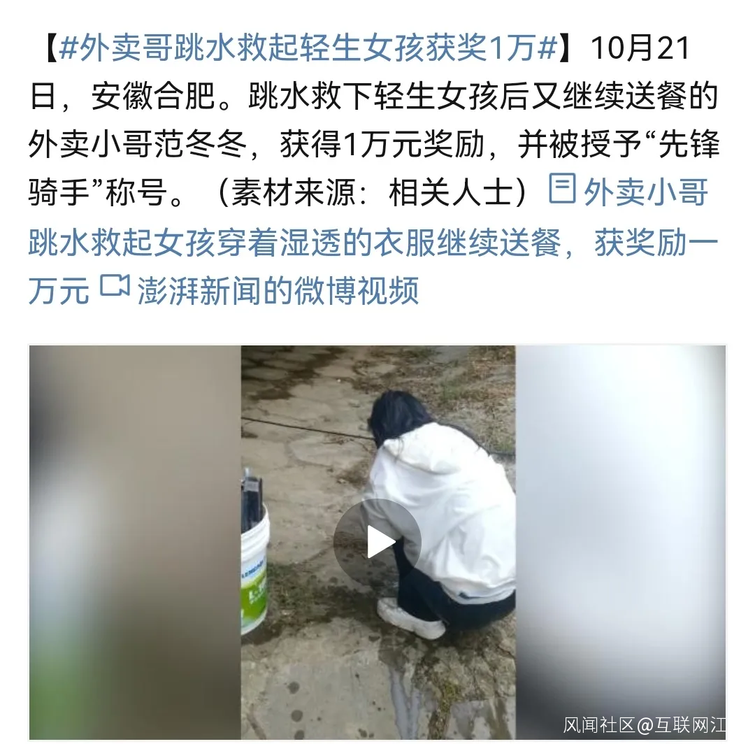 近日,一則美團小哥救人的消息衝上熱搜。安徽外賣小哥範鼕鼕在危急時刻跳下10米高橋,成功救出落水輕生女子。