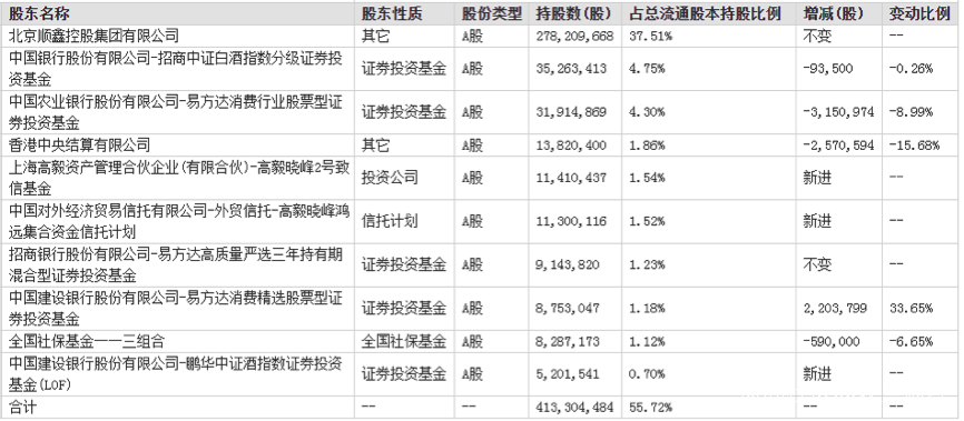 中國農業銀行-易方達消費行業股票型證券投資基金減持315.0974萬股,該股東持股佔流通股比例4.3%;