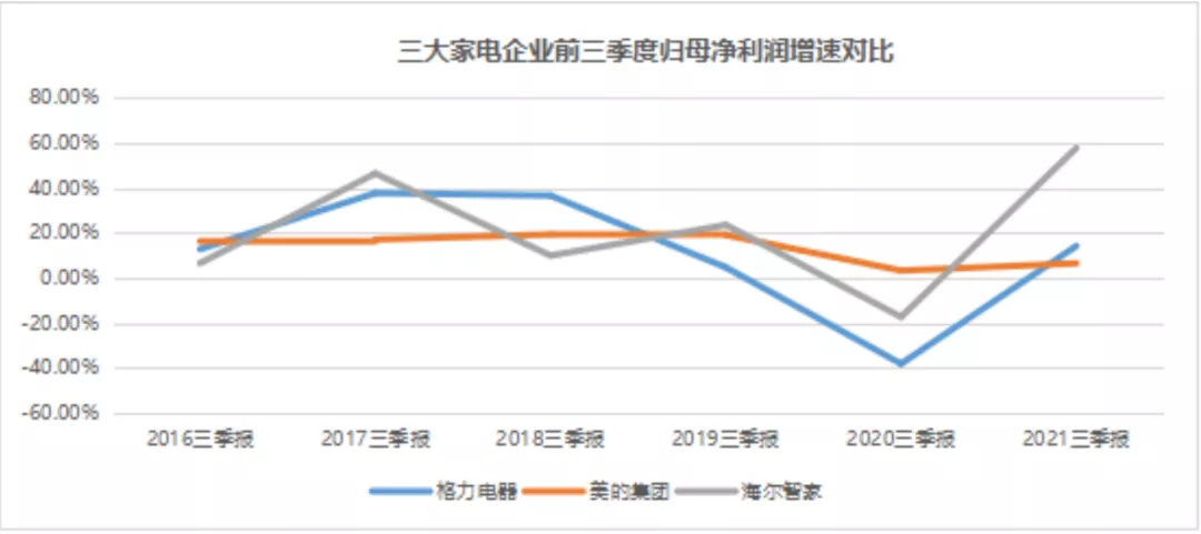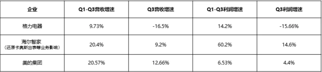 從最新的行業三巨頭髮布的三季報來看,前三季度三家企業都實現了營收、利潤的雙增長;到了Q3單季,格力雙降,海爾智家、美的雙增。