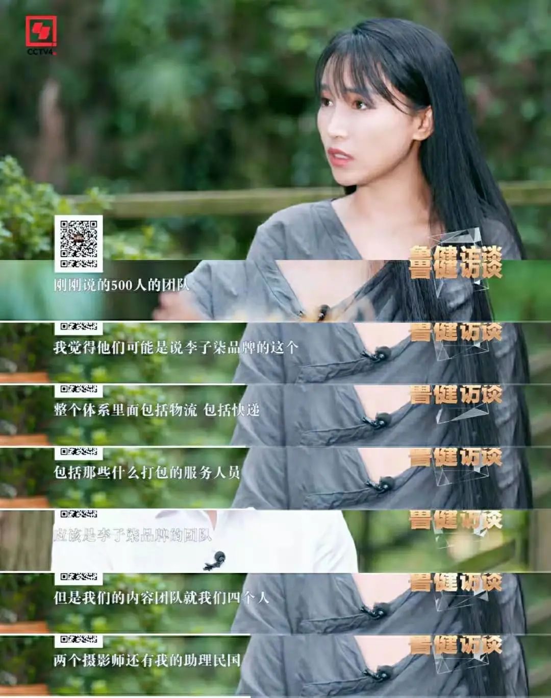 10月底她接受央視採訪的時候也專門提到,所謂的“500人團隊”是服務於李子柒這個品牌的團隊,包括網店的快遞物流客服等等。
