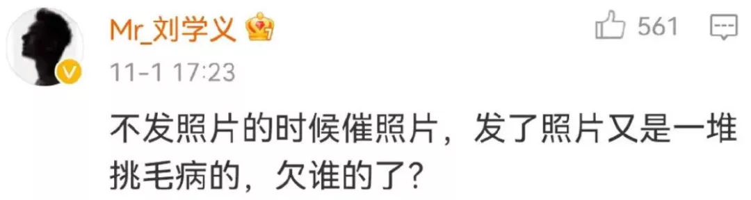 看到照片之後,粉絲像平時一樣催劉學義本人能多營業,不要總拿這種存貨舊圖敷衍。
