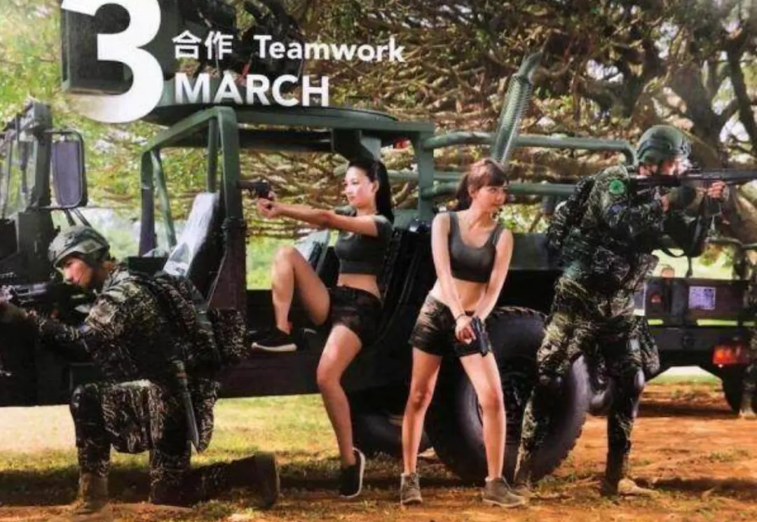 以色誘之,是呆蛙偽防務的一貫措施,三軍各顯神通,海軍推出「暖心英雄」猛男辣妹月曆宣傳,從呆蛙女兵中尋找身材好,顏值高的女兵着裝暴露,直接對呆蛙青年進行色誘….
