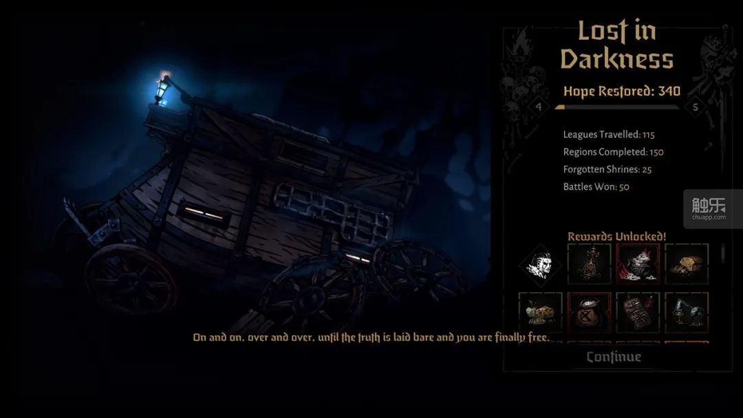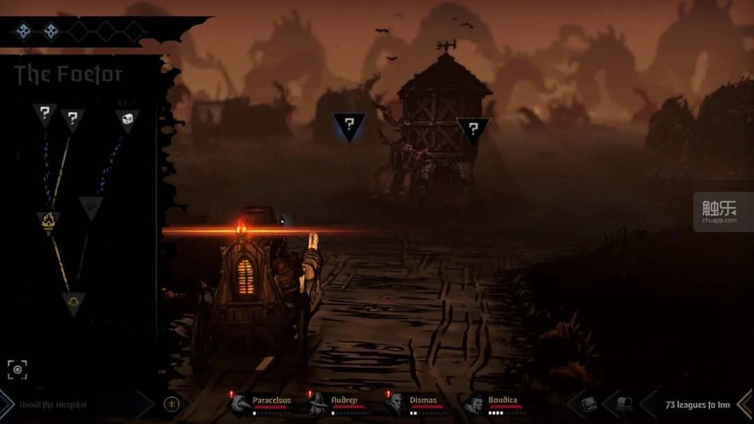 這就使得我,或者説和我一樣習慣了養成要素的玩家在《暗黑地牢2》中大概率會面臨迎頭痛擊。我在遊戲開場半小時左右就遭遇了第一次團滅,探索進度重置。此後便是第二次、第三次……我不斷地回到遊戲開場那一輛馬車和一盞燈的狀態,回到與英雄們初遇的十字路口(The Crossroads),直到在崩潰與痛苦中意識到團滅就是這一作的意義與核心。它更像真正的Roguelike了——你必須不斷死亡,從死亡中學習,並在死亡中進步。