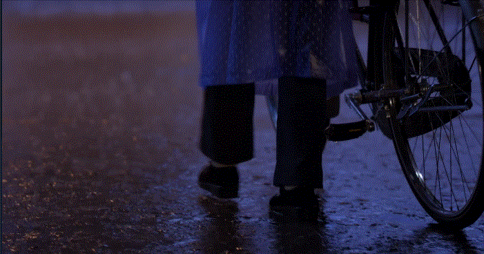 加班後擔心兒子,騎車冒雨回家的丁碧雲,不慎摔下車跌了一跤。