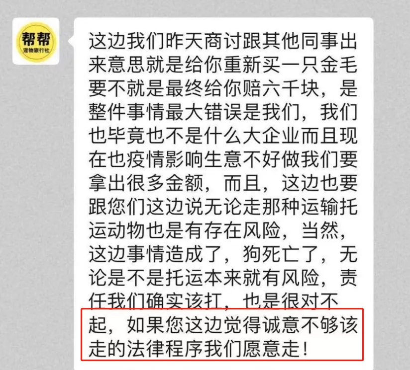 賠付一條狗,或者賠付六千元。