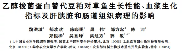 動物營養學報 — 乙醇梭菌蛋白替代豆粕對草魚生長性能、血漿生化指標及肝胰臟和腸道組織病理的影響