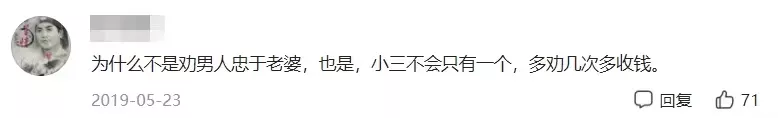 儘管如此,圈子裏有名的勸退師仍不愁客户。據報道,過去一年,網紅“小三勸退師”王真兮帶着團隊成功勸退了800多名第三者,一年中,有340天都在全國各地奔走。